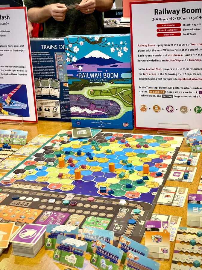 À la fin du XIXᵉ siècle, durant les débuts de l’ère Meiji, le Japon inaugura sa première ligne de chemin de fer entre Shimbashi et Yokohama. Ce nouveau mode de transport déclencha un véritable essor ferroviaire à travers tout le pays. Des entrepreneurs locaux, puis de puissants magnats, fondèrent de nouvelles compagnies qui allaient devenir de grandes sociétés ferroviaires au fil des ères Taishō et Shōwa. En tant que joueurs, vous incarnerez ces magnats, bâtissant et gérant vos propres empires ferroviaires tout en rivalisant pour acquérir le plus grand prestige. Railway Boom recrée cette époque d’industrialisation à travers un gameplay où les joueurs doivent équilibrer la gestion des ressources et le développement de leurs lignes reliant les différentes villes du Japon.
